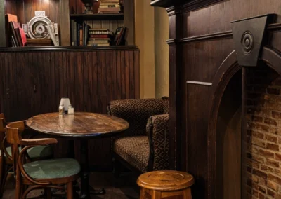Walking into Fionn’s feels like stepping into an old New York Irish pub, warm wood, timeworn details, and a layout that encourages conversation. The space is only about five years old, but it feels older in the best way, like it has been there forever.