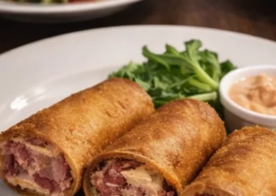 This is the kind of menu item that makes you smile before you even take a bite, and then the bite makes you even happier. Tender corned beef, Swiss cheese, sauerkraut, rolled and fried into a golden, crunchy starter that still tastes like a Reuben, just in a more fun, snackable form. If you want one “must order” appetizer, we would point you here.