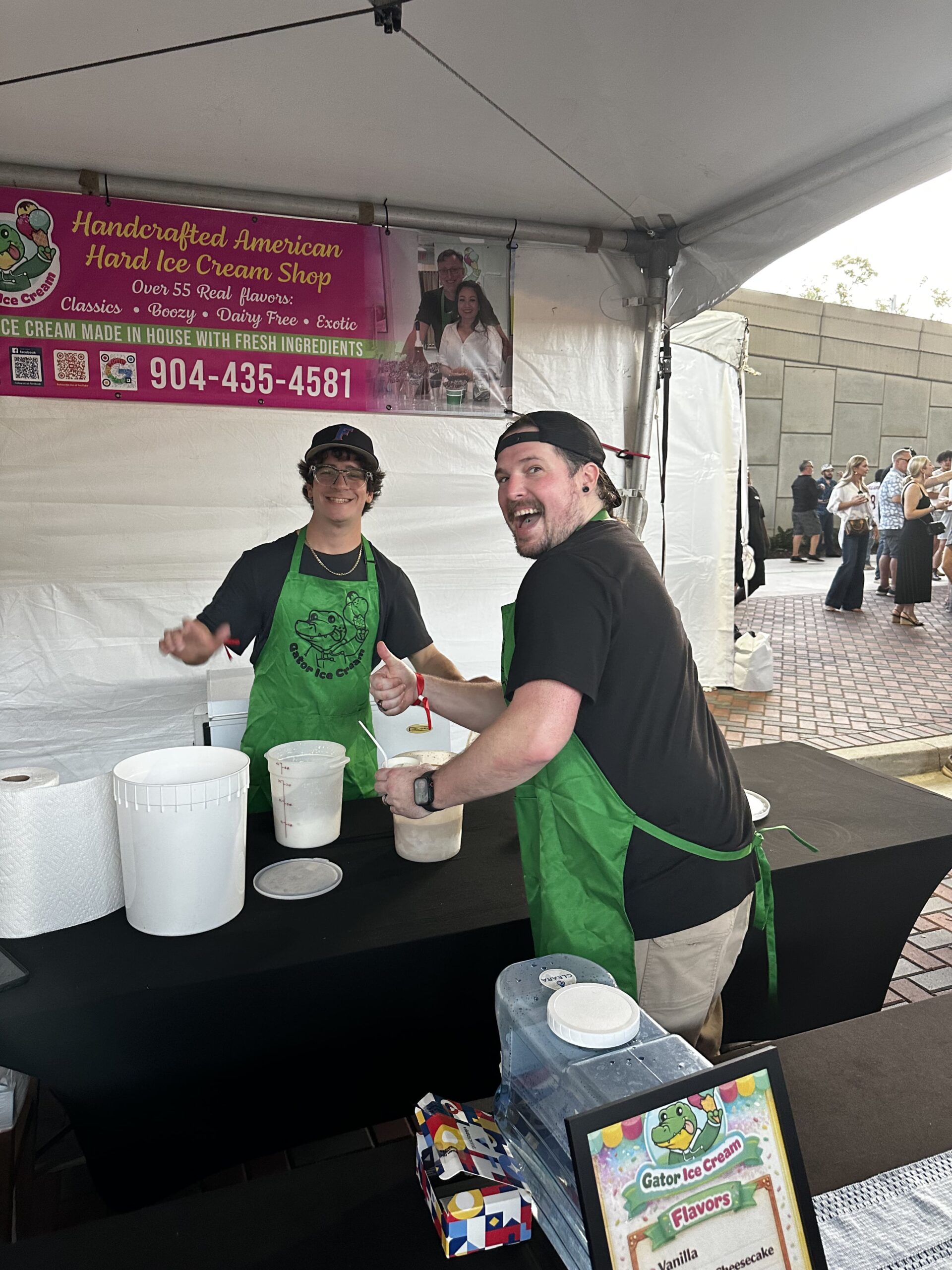 Tucked among the wine tastings and festival vendors was Gator Ice Cream, a Jacksonville Beach favorite known for their homemade approach to frozen desserts. Festival crowds were buzzing around the stand, and after one look at the rich, creamy scoops being served, we knew we had to see what the excitement was about.