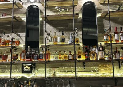 The bar itself is impressive, well stocked and visually inviting. The space balances casual comfort with a slightly elevated polish. It feels like a private aviation lounge that welcomes the community.
