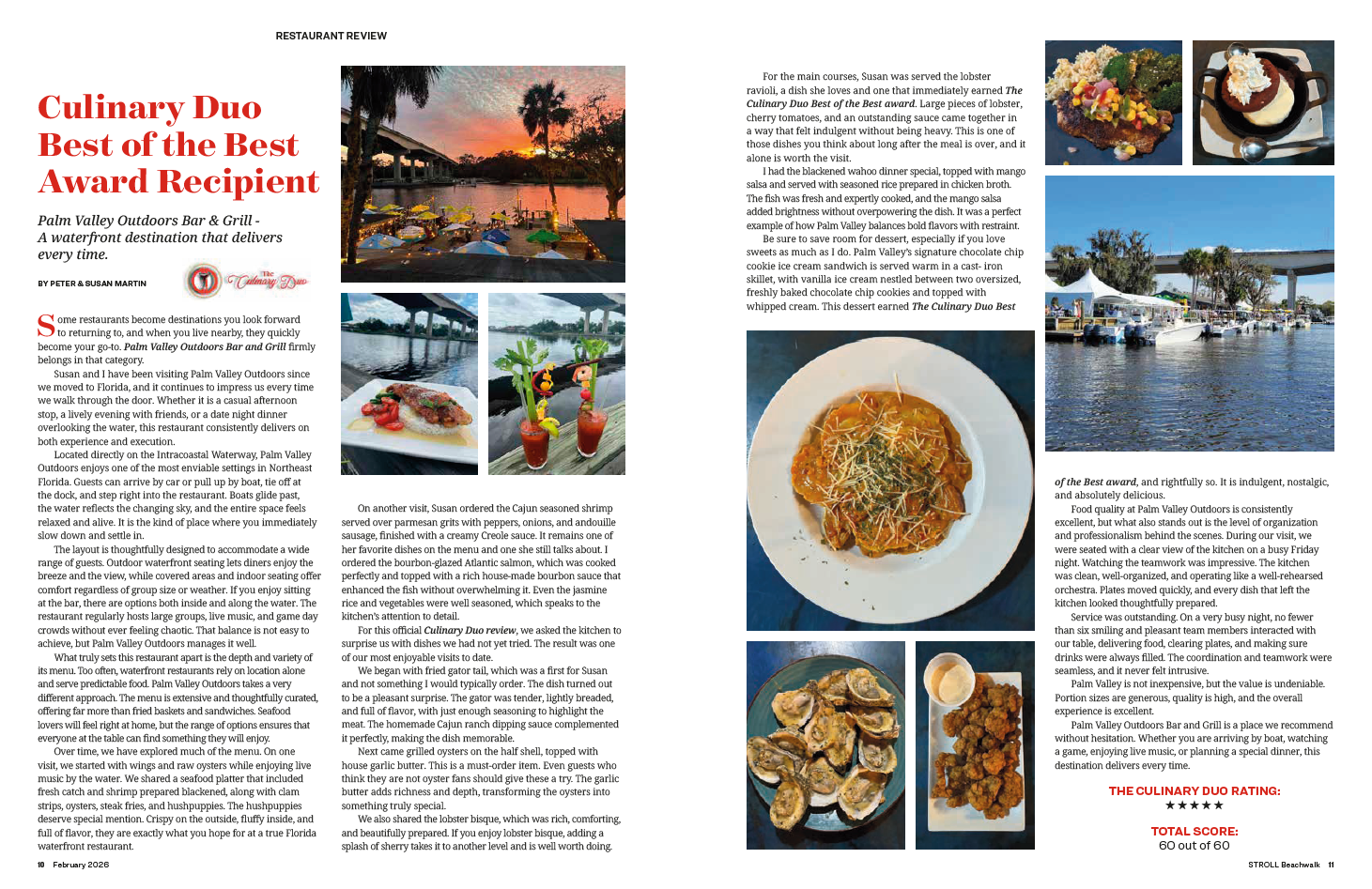 Susan and I have been visiting Palm Valley Outdoors since we moved to Florida, and it continues to impress us every time we walk through the door. Whether it is a casual afternoon stop, a lively evening with friends, or a date night dinner overlooking the water, this restaurant consistently delivers on both experience and execution.